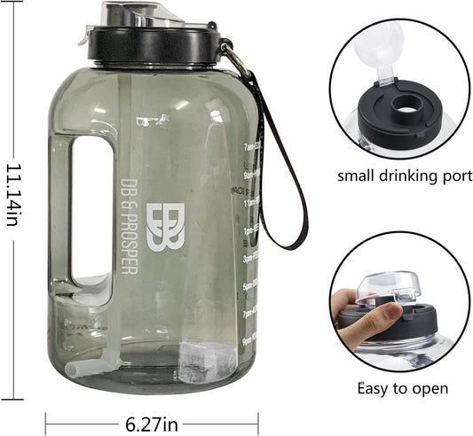 Large One Gallon Black Motivational Water Bottle with Time Marker | Bottles | Hydration | Gym | E...